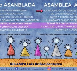 Día: 30 de noviembre Hora: 1ª Convocatoria 17:00h 2ª Convocatoria 17:30h (acudir a la 2ª) Lugar: Biblioteca de Primaria El orden del día a tratar será el siguiente: 1. Información sobre la […]